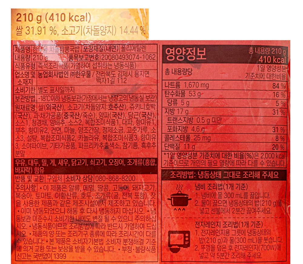 | 포장단위별 내용물의 용량(중량), 수량 | 210g x 6개 | 원재료명 및 함량 | 컨텐츠 참조 |