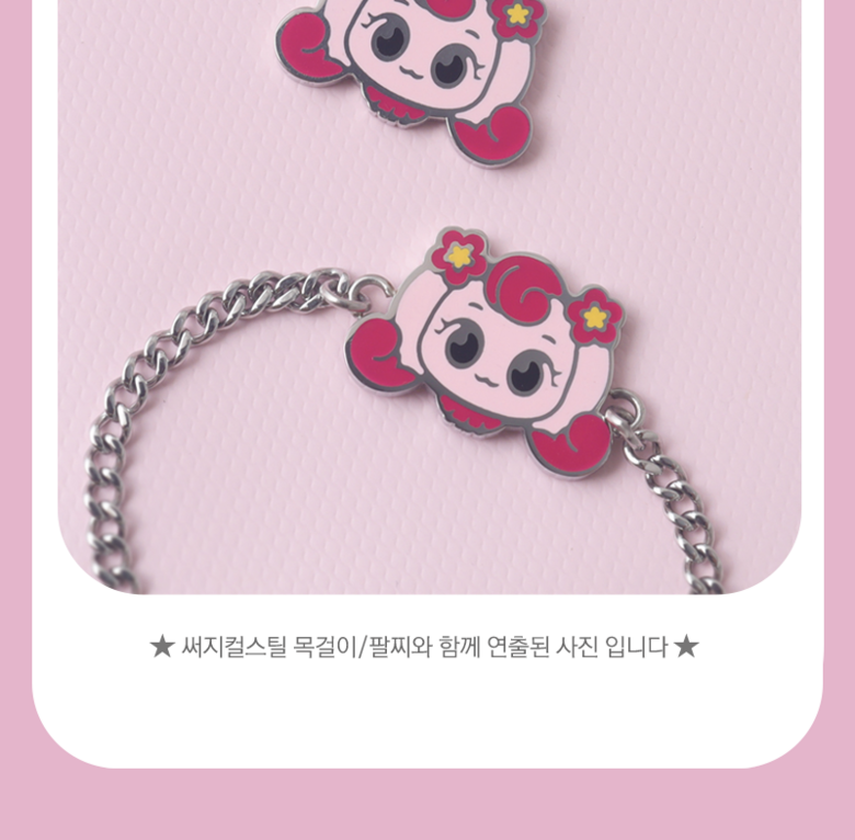| 크기 | 펜던트 크기 ( 가로 20mm 세로 14mm ) 팔찌 길이 13cm + 여유줄 3cm | 중량 | 7g 내외 |