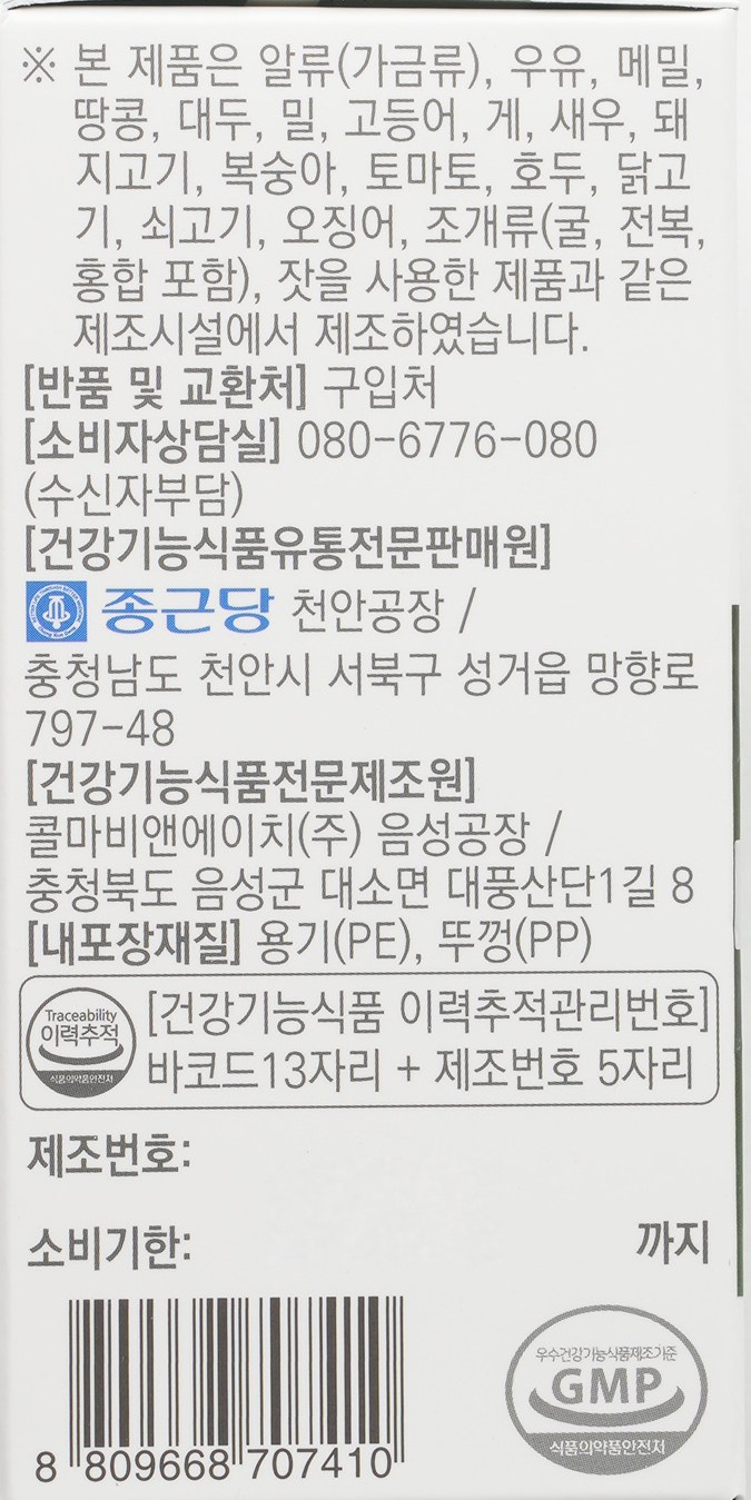 - 건강기능식품: 인증 있음