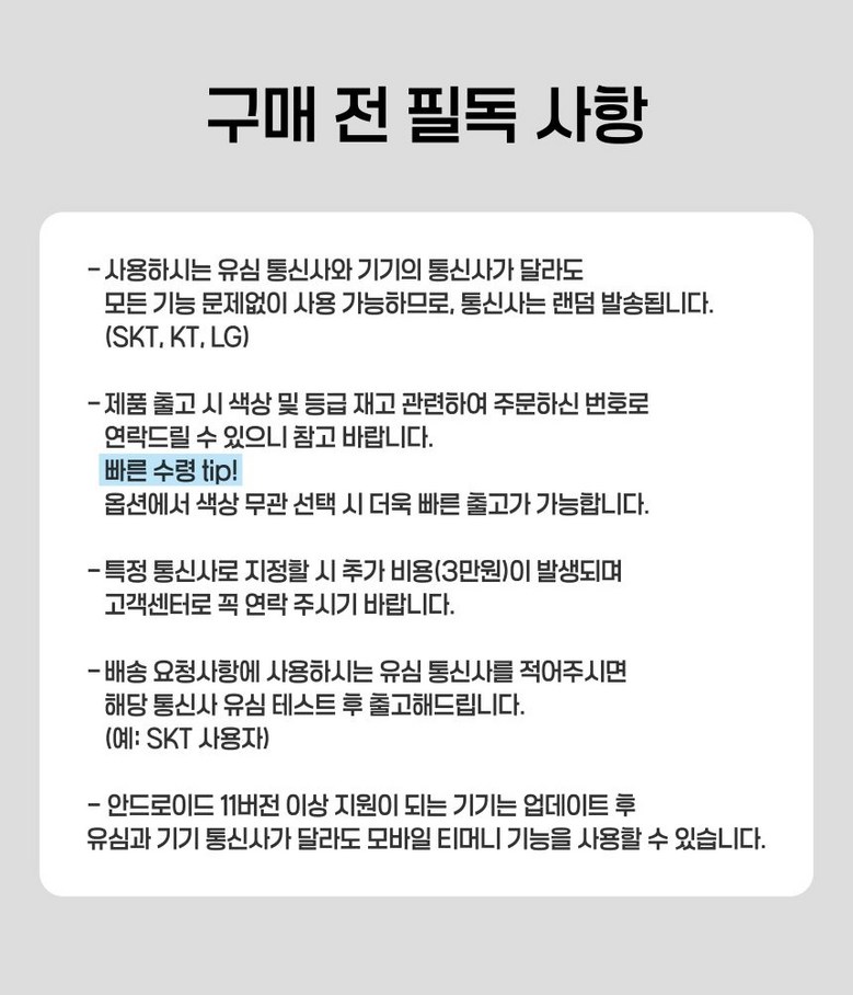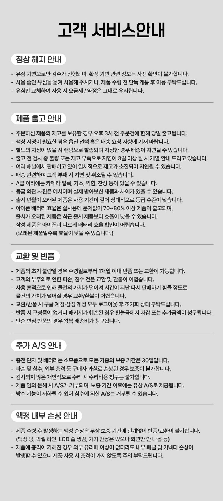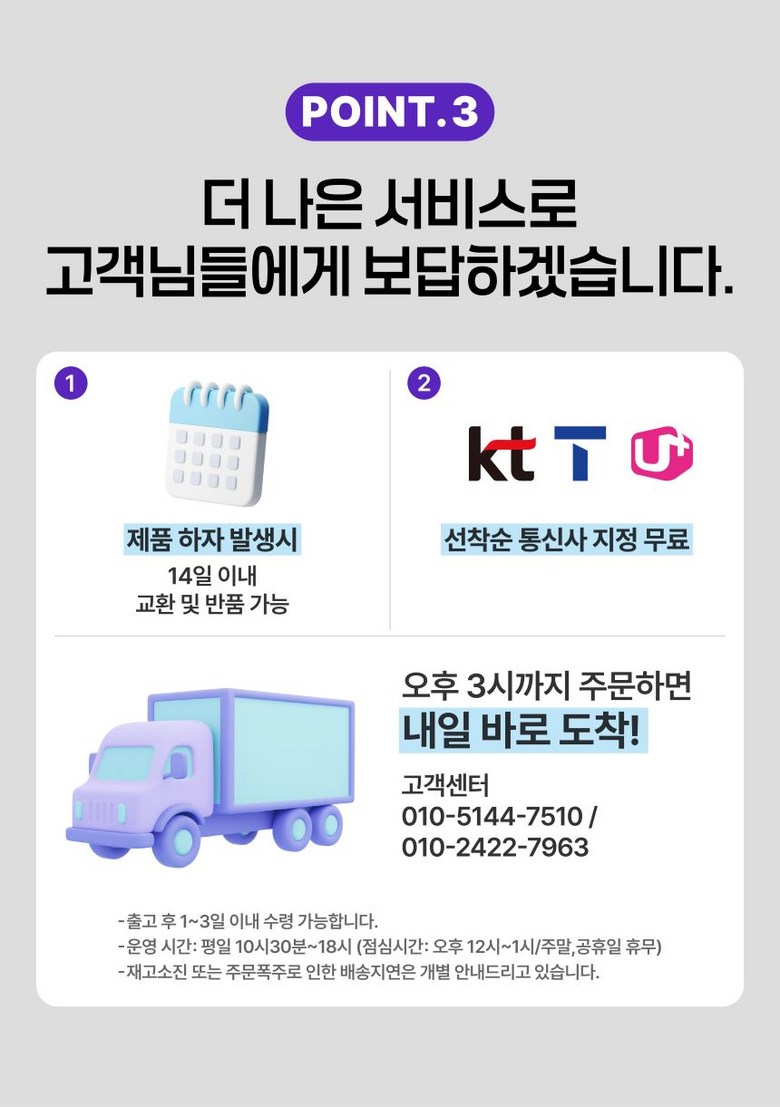 - ㆍ제조사의 사정 (신모델 출시 등) 및 부품 가격 변동 등에 의해 무료 교환/반품으로 요청하는 경우