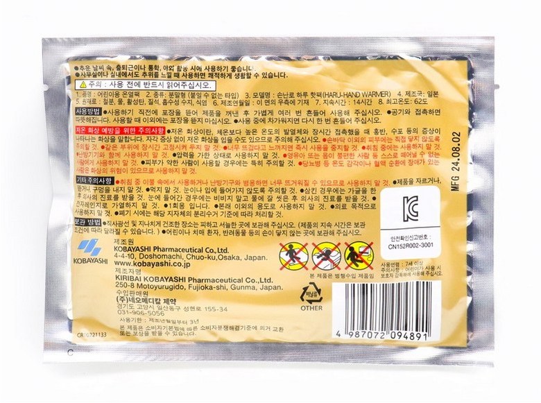 - 손난로 종류: 포켓용 핫팩