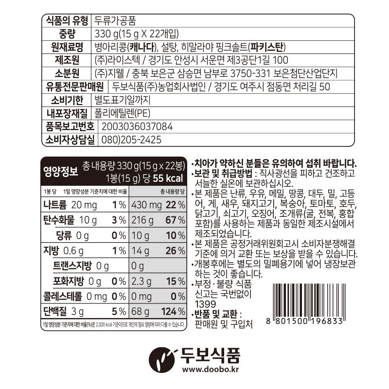 | 제품명 | 하루한통 히말라야 솔트를 뿌린 구운 병아리콩 | 식품의 유형 | 컨텐츠 참조 |