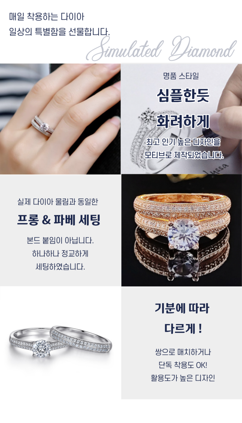 | 종류 | 은쌍가락지 랩 다이아 1캐럿 반지 | 소재 | s925 실버 |