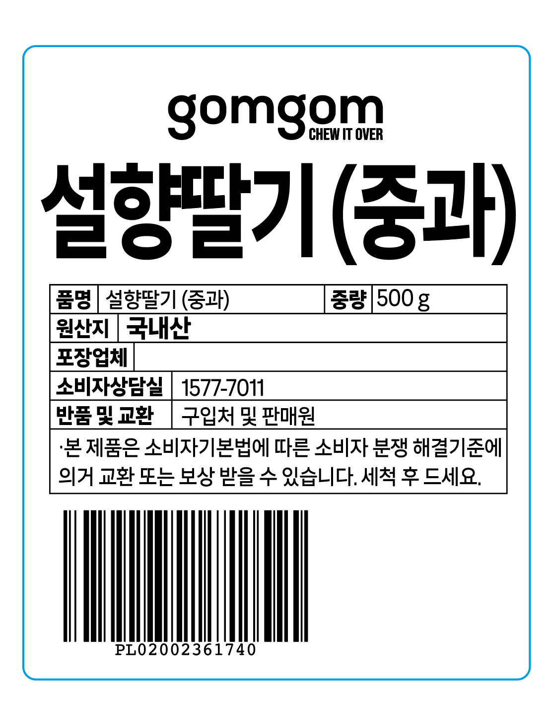 | 품목 또는 명칭 | 설향딸기(M) | 포장단위별 내용물의 용량(중량),수량,크기 | 500g x 2팩 |