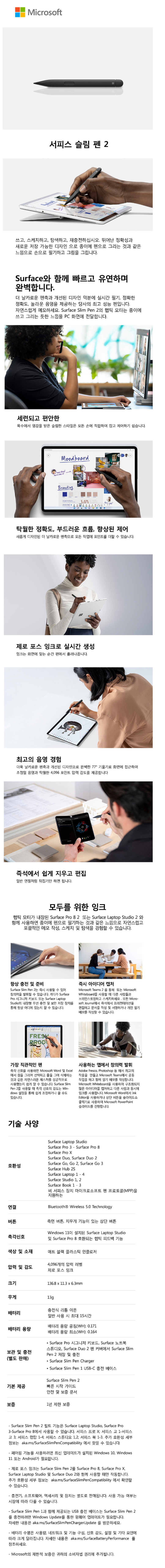 | 품명 및 모델명 | 마이크로소프트 서피스 전용 슬림 펜2 8WV-00011 / 1962 | KC 인증정보 | R-R-MSK-1962 |