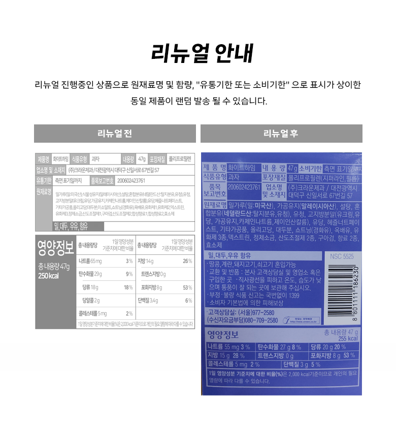 | 생산자 및 소재지 | 컨텐츠 참조 | 제조연월일, 소비기한 또는 품질유지기한 | 업데이트 예정 |