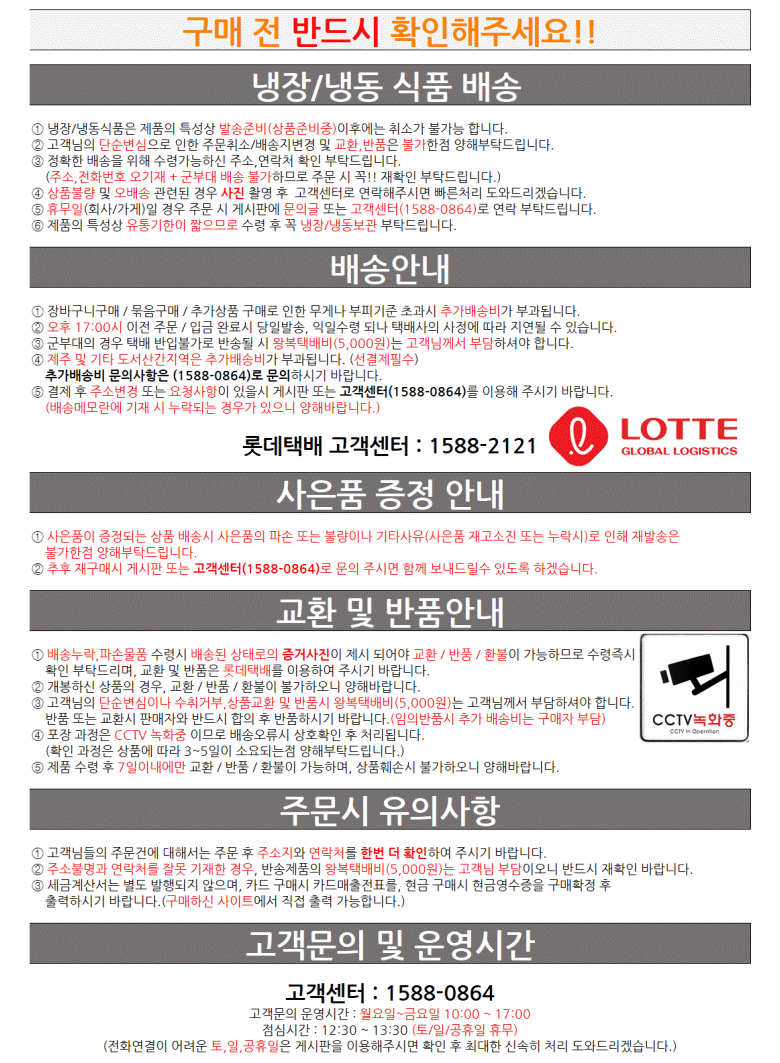 - 상품문의 및 후기게시판을 통해 취소나 환불, 반품 등은 처리되지 않습니다.