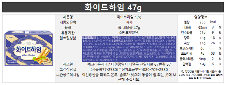 | 제조연월일, 소비기한 또는 품질유지기한 | 상품 상세페이지 참조 | 세부 품목군별 표시사항 | 상품 상세페이지 참조 |