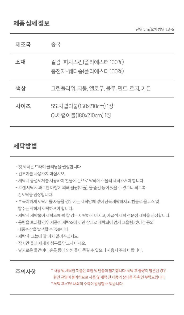 - ㆍ모니터 해상도의 차이로 인해 색상이나 이미지가 실제와 달라, 고객이 단순 변심으로 교환/반품을 무료로 요청하는 경우