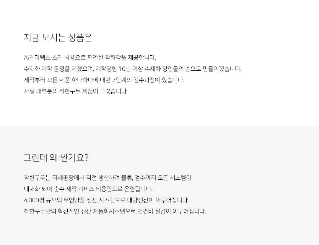 | 치수 | 컨텐츠 참조 | 제조자(수입자) | 착한구두 |