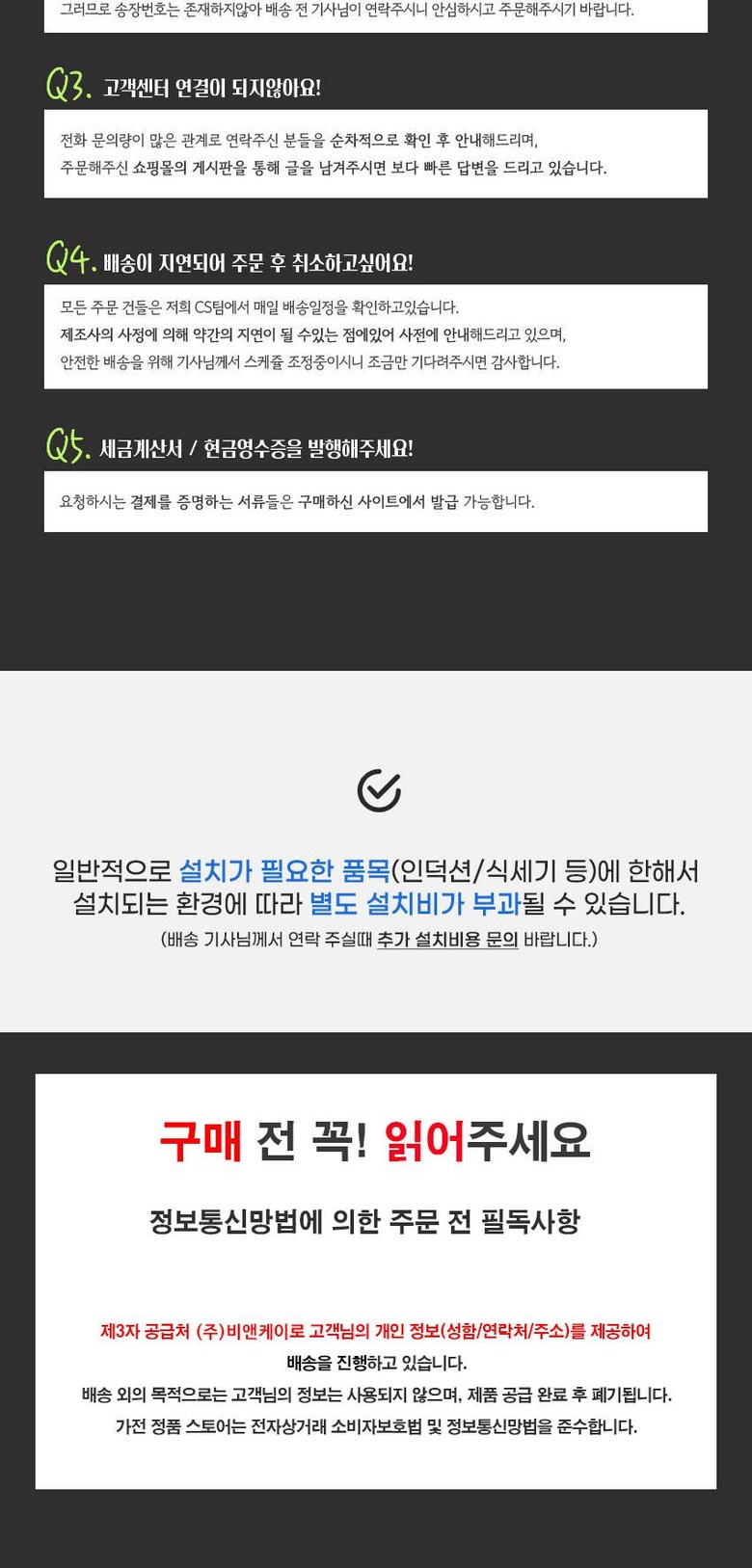 - 공개 게시판이므로 전화번호, 메일 주소 등 고객님의 소중한 개인정보는 절대 남기지 말아주세요.