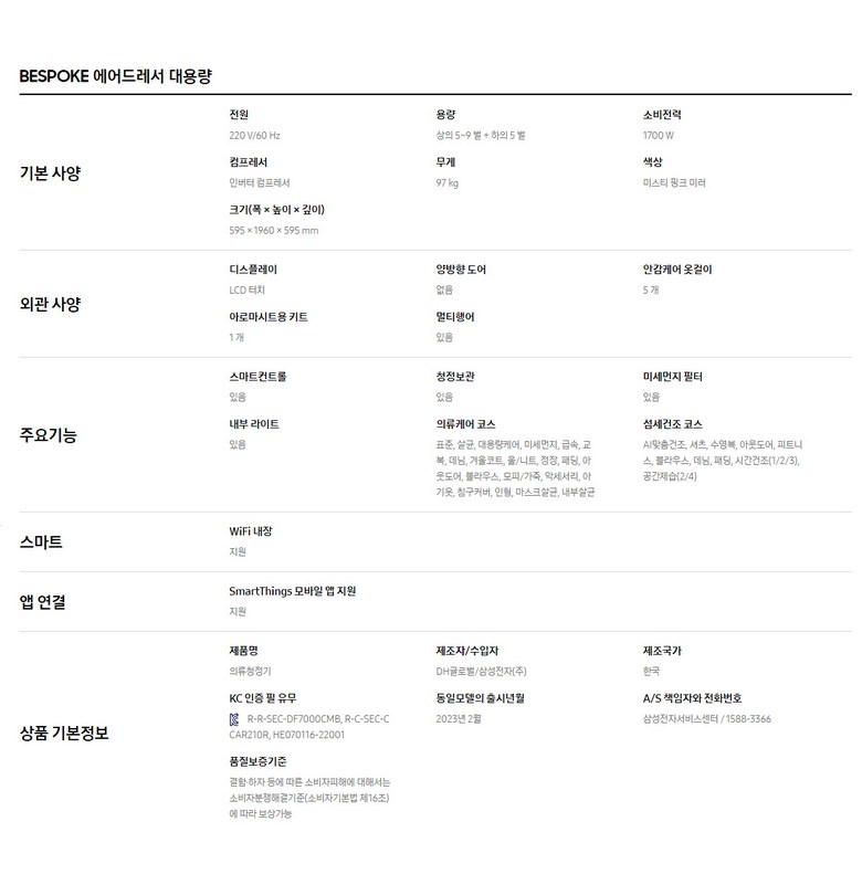 | 정격전압, 소비전력 | 상품 상세페이지 참조 | 에너지소비효율등급 | 상품 상세페이지 참조 |