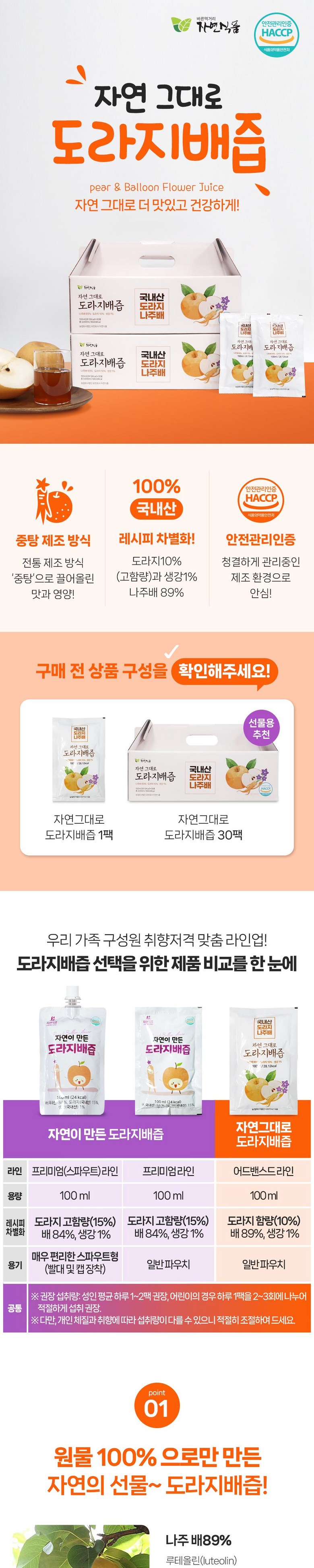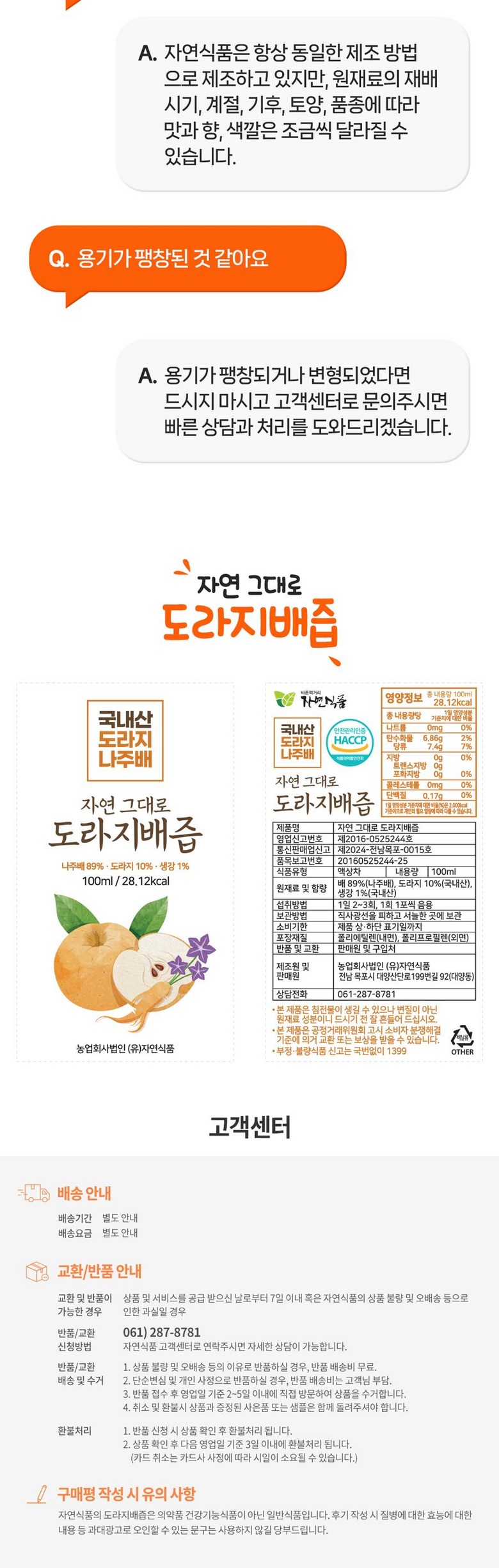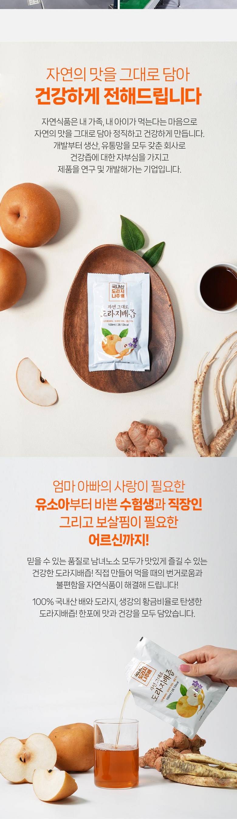 | 제품명 | 자연 그대로 도라지배즙 | 식품의 유형 | 액상차 |