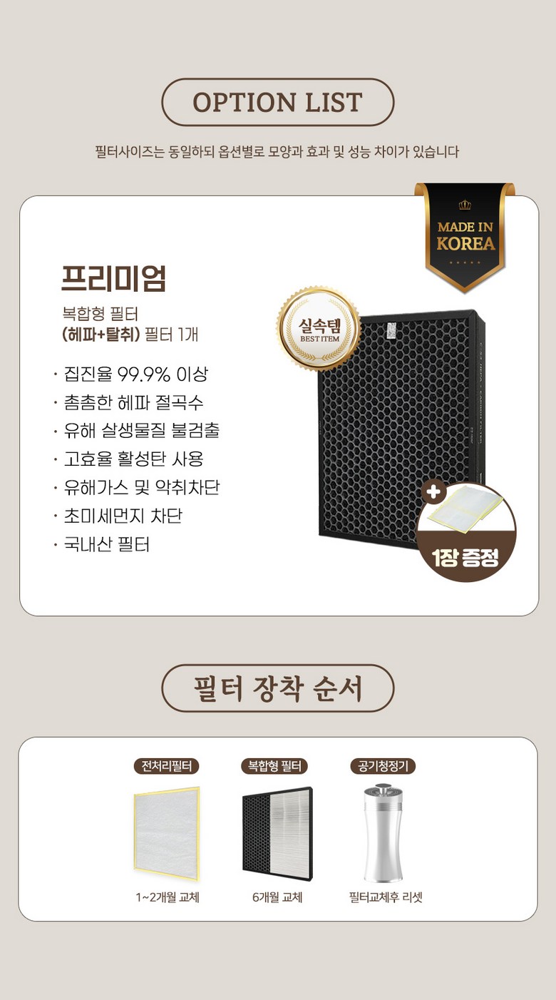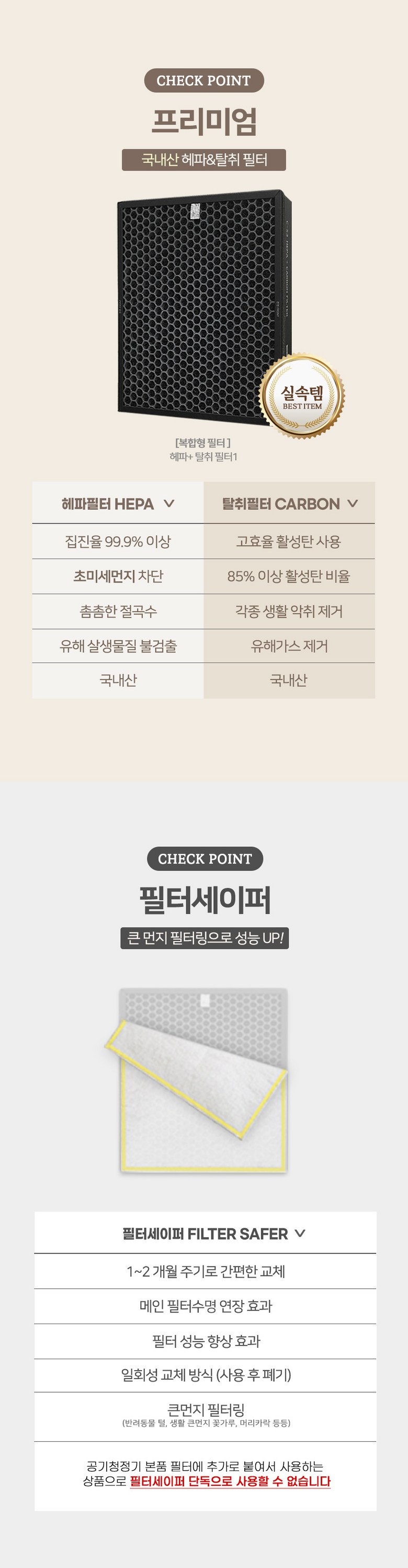 계좌이체- 공기청정기 필터 종류: 집진+탈취필터