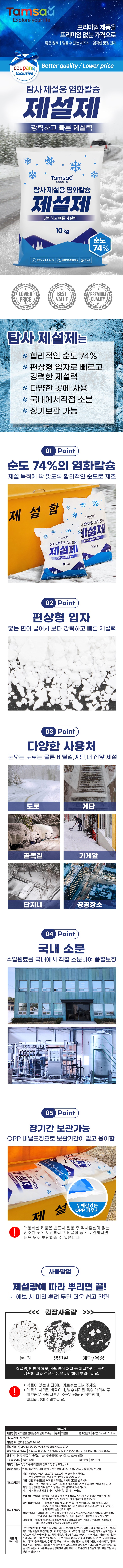 | 품명 및 모델명 | 탐사 고순도 제설용 염화칼슘 74% 10KG | 인증/허가 사항 | 해당사항없음 |