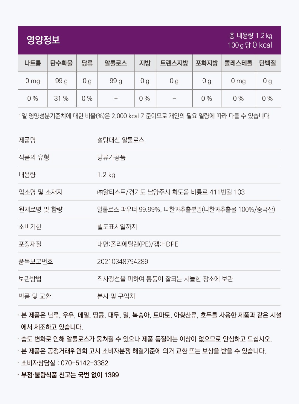 | 포장단위별 내용물의 용량(중량), 수량 | 1.2kg, 1개 | 원재료명 및 함량 | 컨텐츠 참조 |