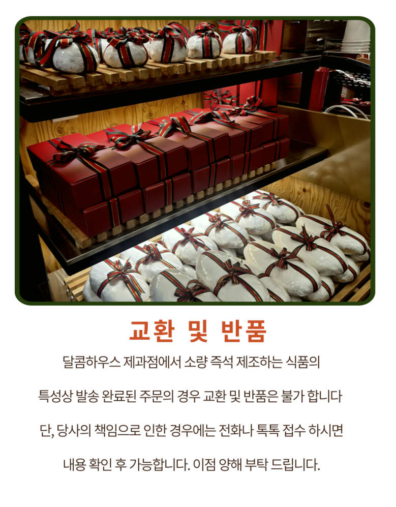 | 교환/반품 신청 기준일 | ㆍ단순변심에 의한 교환/반품은 제품 수령 후 7일 이내까지, 교환/반품 제한사항에 해당하지 않는 경우에만 가능 (배송비용과 교환/반품 비용 왕복배송비 고객부담) ㆍ상품의 내용이 표시·광고의 내용과 다른 경우에는 상품을 수령한 날부터 3개월 이내, 그 사실을 안 날 또는 알 수 있었던 날부터 |