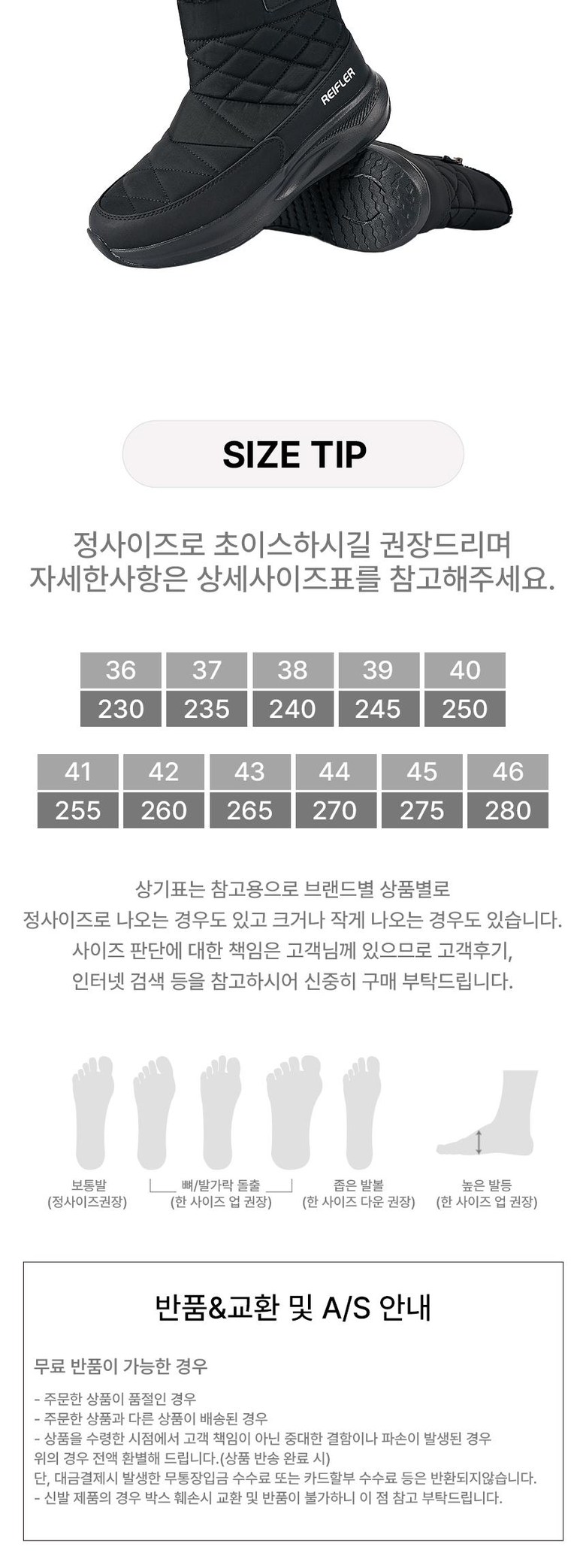 고품질의 패딩방한화를