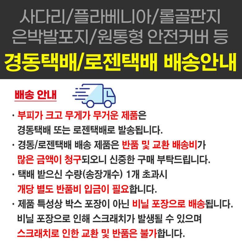 - ㆍ교환/반품에 관한 일반적인 사항은 판매자가 제시사항보다 관계법령이 우선합니다.