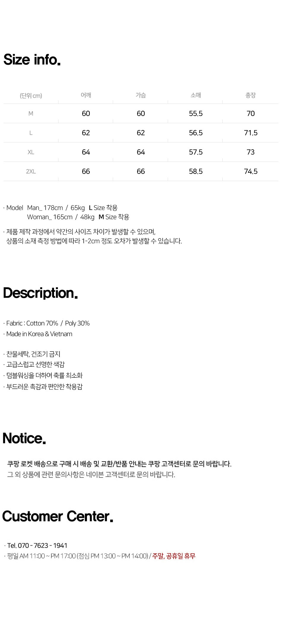 - ㆍ모니터 해상도의 차이로 인해 색상이나 이미지가 실제와 달라, 고객이 단순 변심으로 교환/반품을 무료로 요청하는 경우