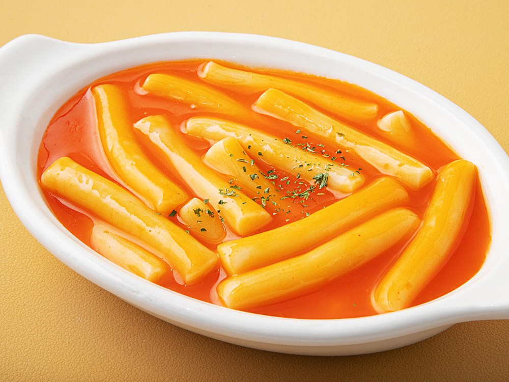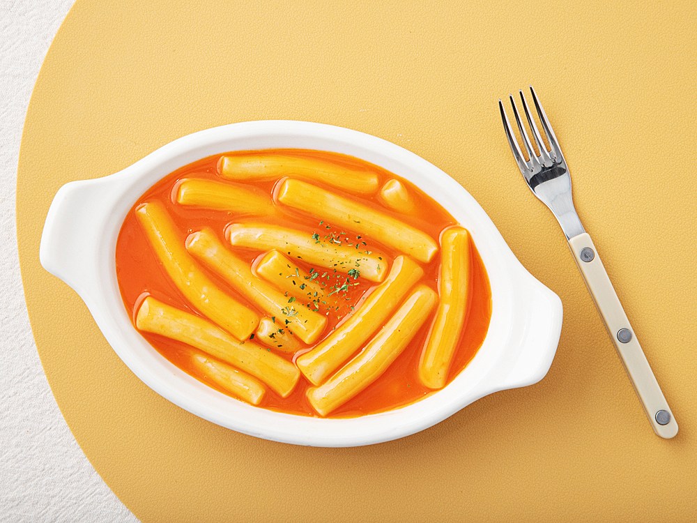 고소한 매력이 돋보이는 치즈 떡볶이예요. 쫀득한 밀 떡볶이 떡을 사용해, 떡볶이 국물을 잔뜩 머금고 있죠. 한입 먹어보면 칼칼하면서도 부드럽게 마무리되는 풍미가 특히 일품이랍니다. 간단하게 조리해 맛있는 한 끼를 즐겨보세요.