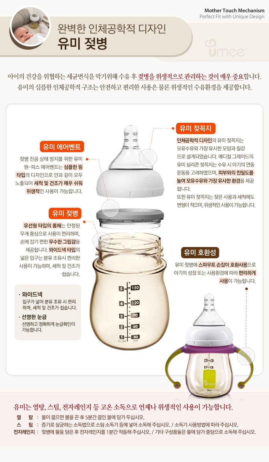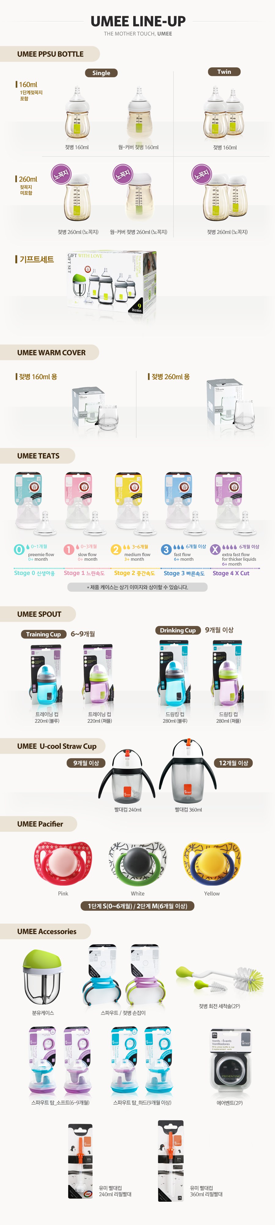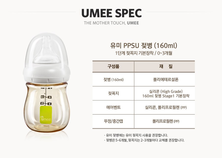 | 크기 | 젖병: 지름 8cm * 높이 14.5cm / 젖꼭지: 컨텐츠 참조 | 중량 | 용량: 160ml |
