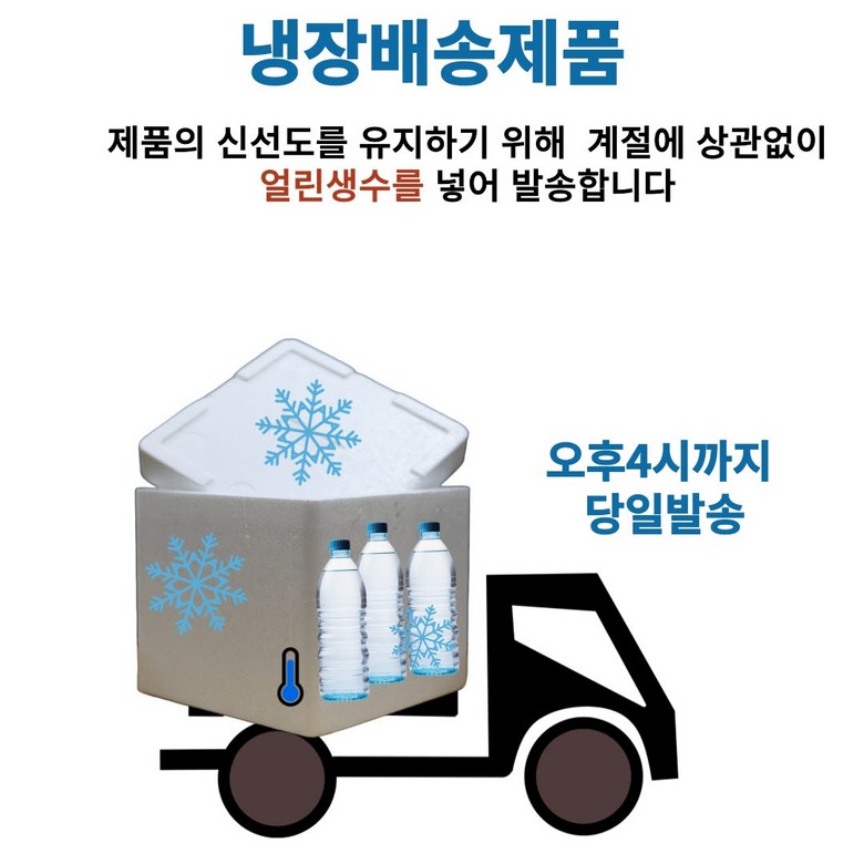 | 배송방법 | 신선/냉장/냉동 | 배송비 | 무료배송 · 도서산간 추가 배송비 - 제주 지역: 5,000원 - 도서산간 지역: 5,000원 |
