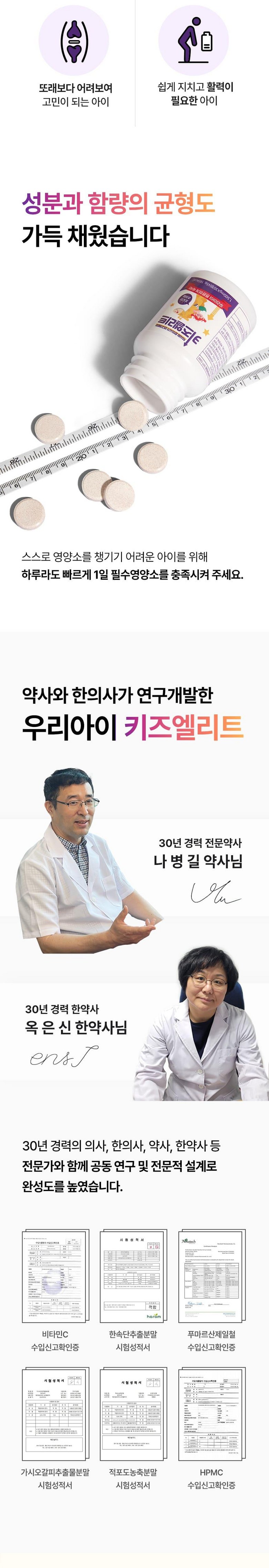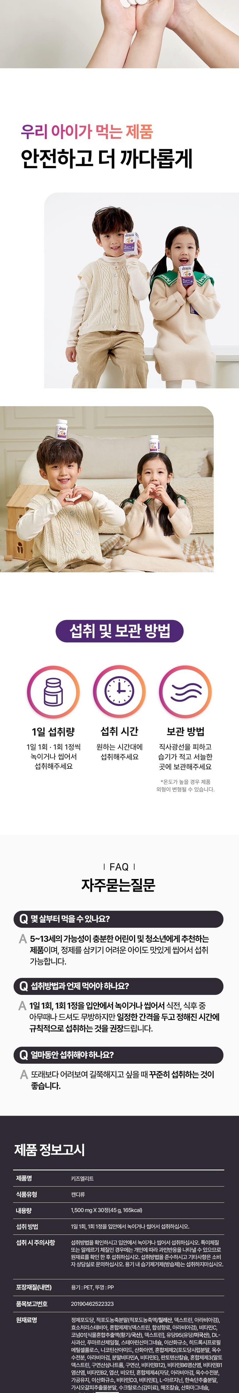 | 제품명 | 약사와 한의사가 연구 개발한 키즈앨리트 30정 | 식품의 유형 | 캔디류 |