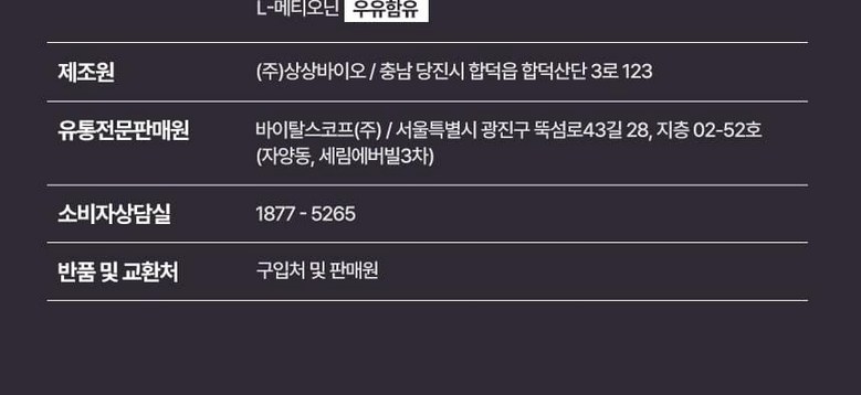 | 생산자 및 소재지 | 상세페이지 참조 | 제조연월일, 소비기한 또는 품질유지기한 | 소비기한(또는 유통기한) : 2026년 04월 20일 이거나 그 이후인 상품 제조년월일 : 2024년 04월 21일 이후인 제조상품 |