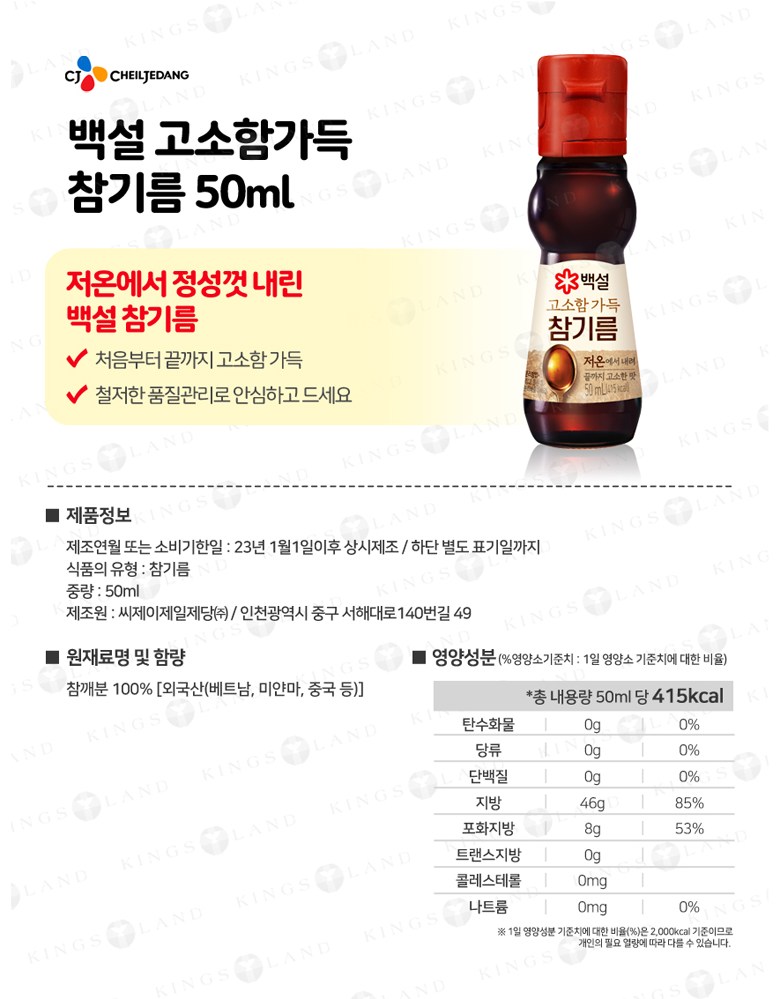 | 생산자 및 소재지 | 상품 상세페이지 참조 | 제조연월일, 소비기한 또는 품질유지기한 | 상품 상세페이지 참조 |