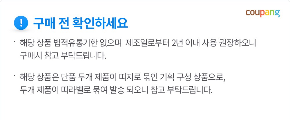 | 제조연월 및 유통기한 (유통기한의 경우 해당 없는 제품은 생략 가능) | 본 상품은 해당 물류센터 직발송 상품인 관계로 해당 정보가 매번 변경되어 정확한 정보제공이 어렵습니다. 관련 사항은 쿠팡고객센터(1577-7011)로 문의 바랍니다. | 중량∙용량∙매수∙크기 | 2.3L, 2개 |