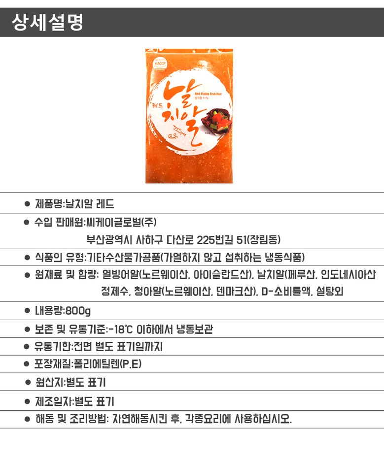| 제조연월일, 소비기한 또는 품질유지기한 | 상품 상세페이지 참조 | 세부 품목군별 표시사항 | 상품 상세페이지 참조 |