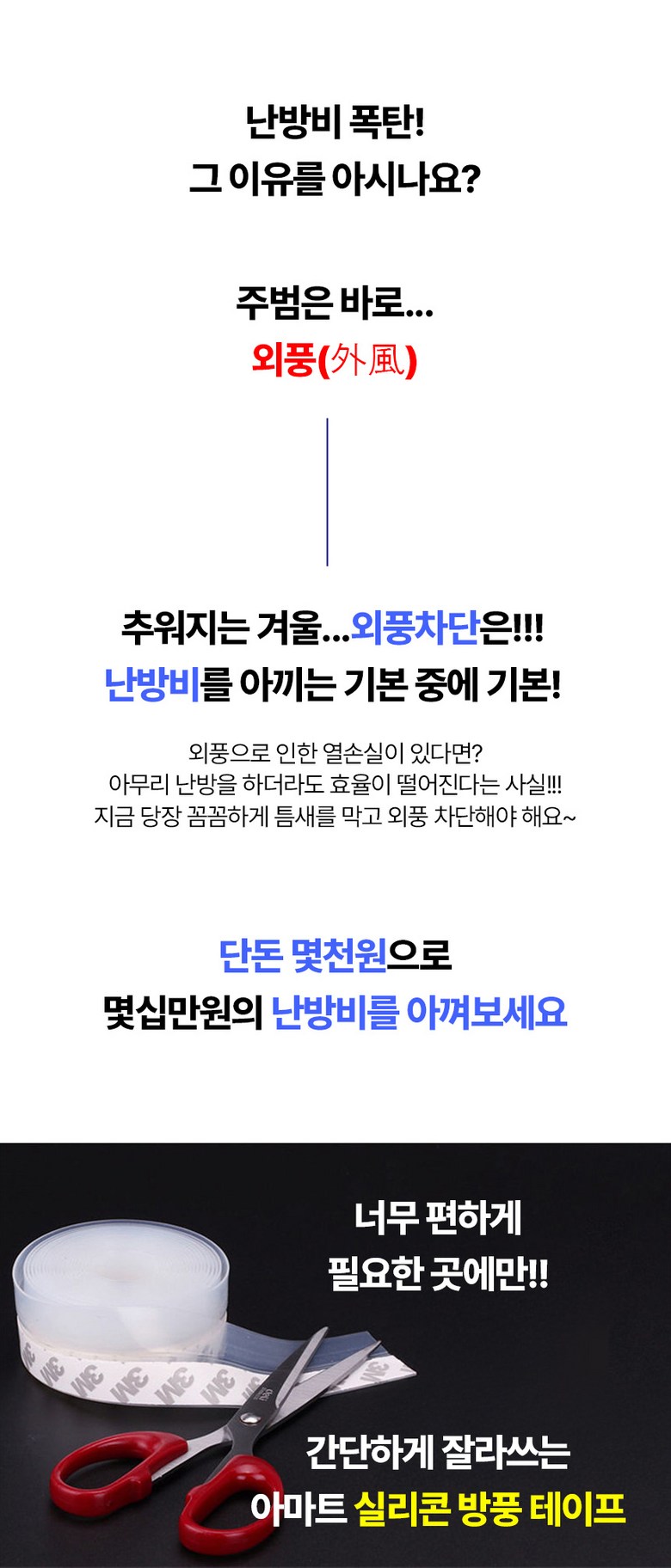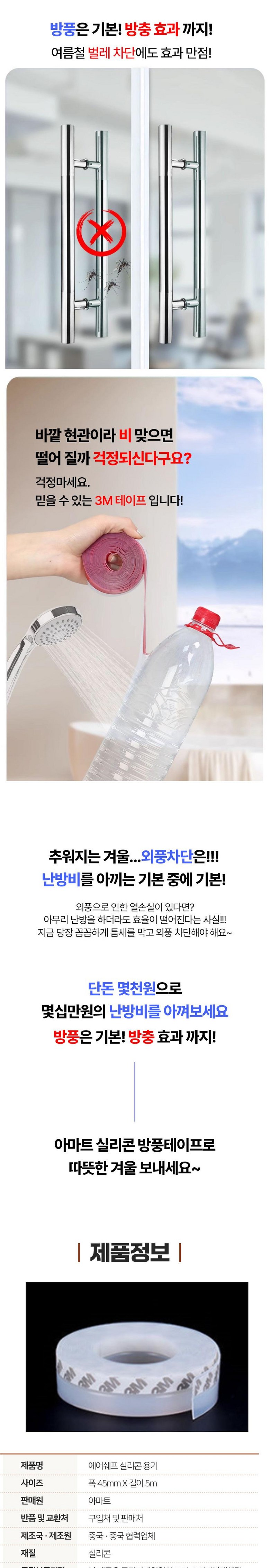 아마트 강력 실리콘 방풍 테이프 문풍지 45mmX5m 사계절 해충차단