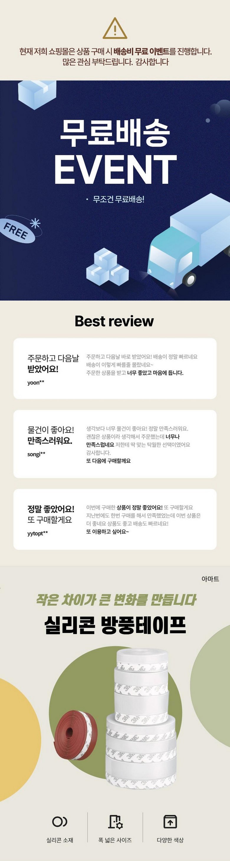 - ㆍ모니터 해상도의 차이로 인해 색상이나 이미지가 실제와 달라, 고객이 단순 변심으로 교환/반품을 무료로 요청하는 경우