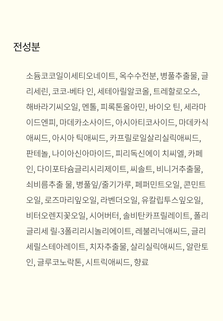 | 화장품제조업자, 화장품책임판매업자 및 맞춤형화장품판매업자 | 컨텐츠 참조 | 제조국 | 대한민국 |