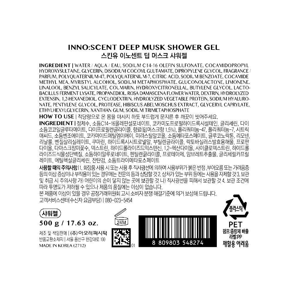 | 용량(중량) | 500ml | 제품 주요 사양 | 모든 피부용 |
