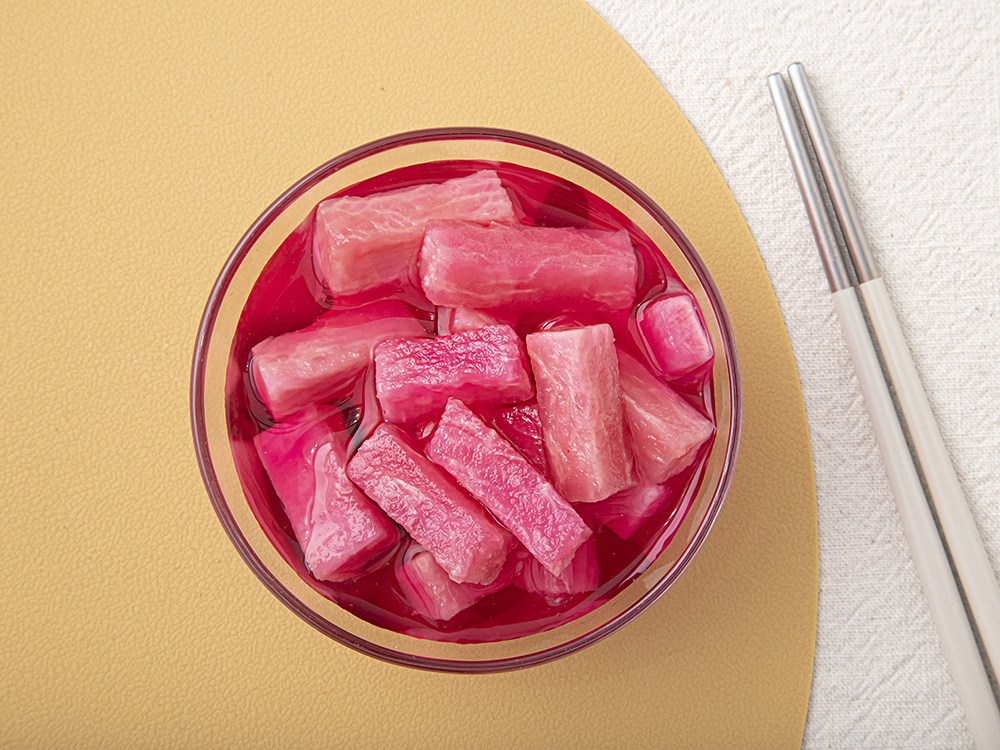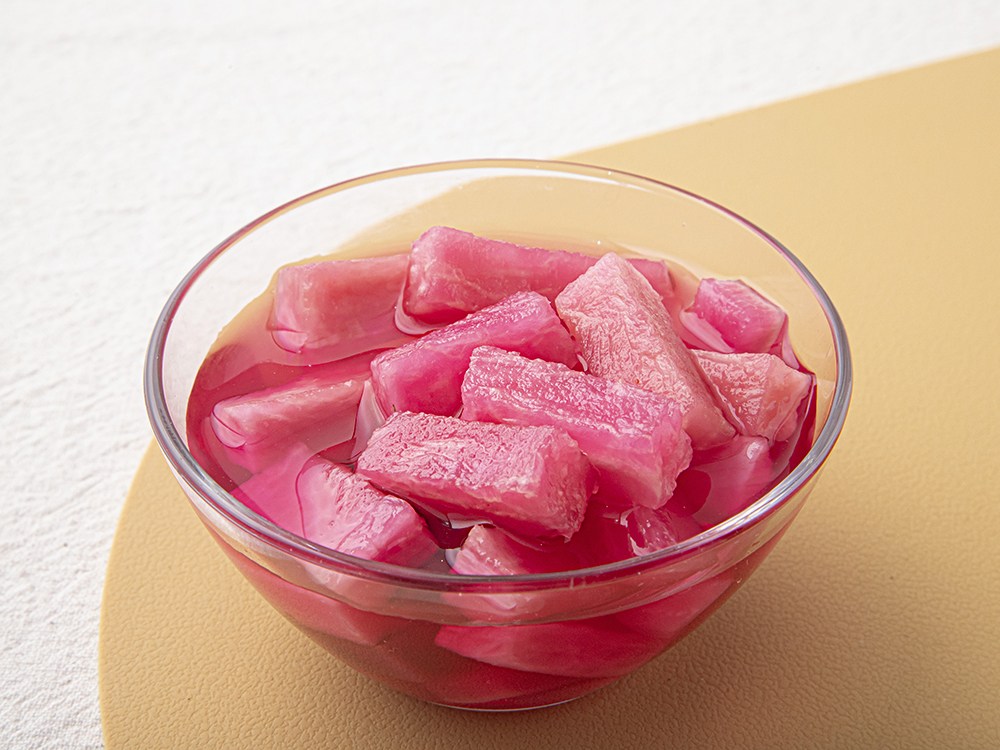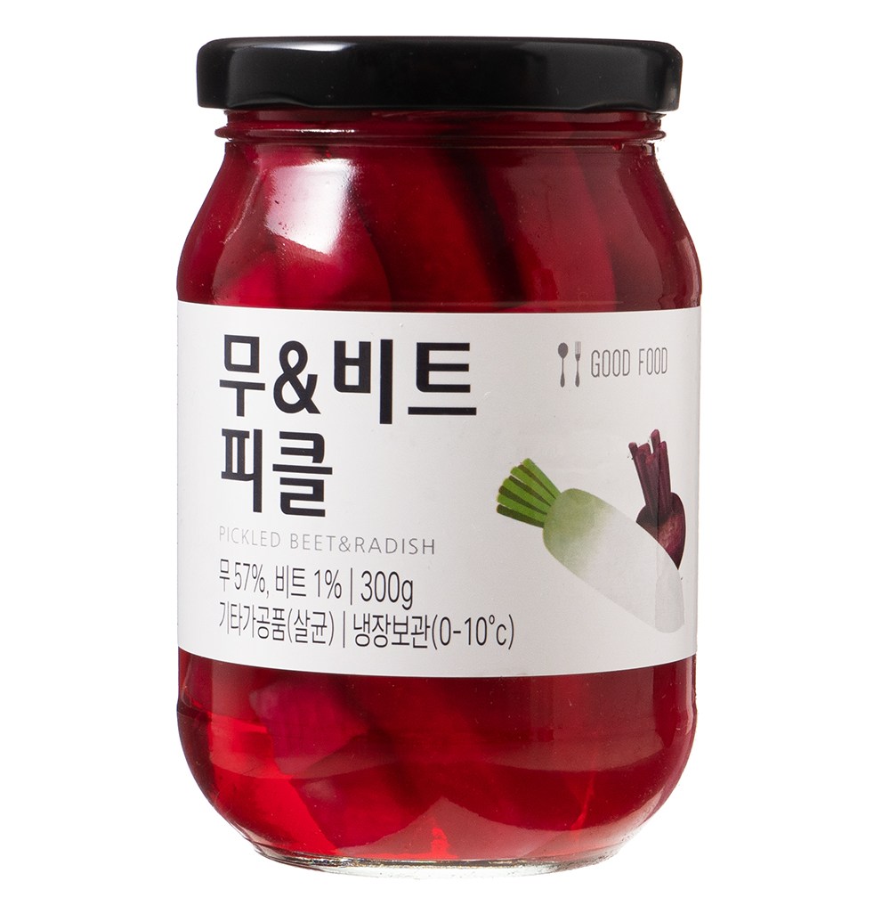 산뜻한 풍미로 입안을 개운하게 해주는 무&비트 피클이에요. 무와 비트의 아삭한 식감이 기분 좋게 느껴지죠. 비트의 분홍빛으로 예쁘게 물들어, 입과 눈이 모두 즐거운 반찬이랍니다. 기름진 요리를 먹을 때나 입맛이 없을 때, 한 병 속 가득 담긴 새콤함을 즐겨보세요.