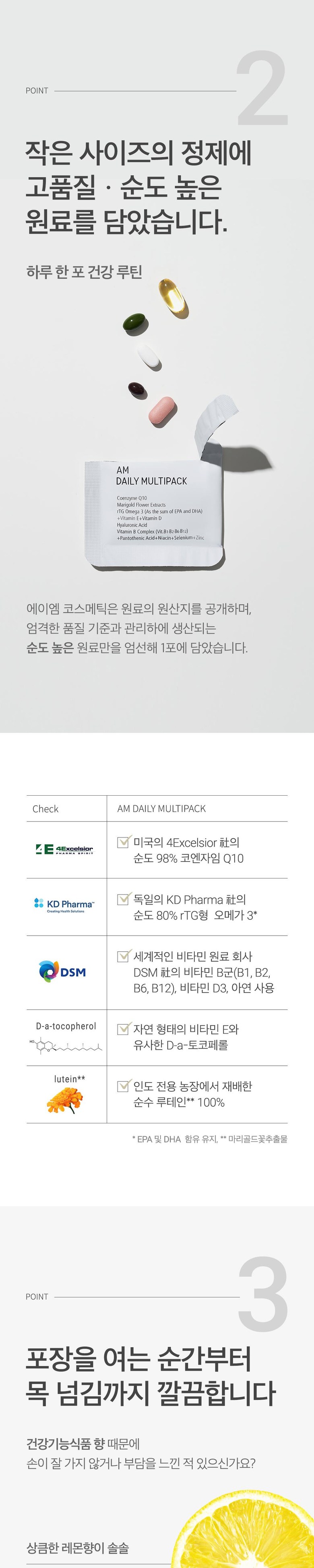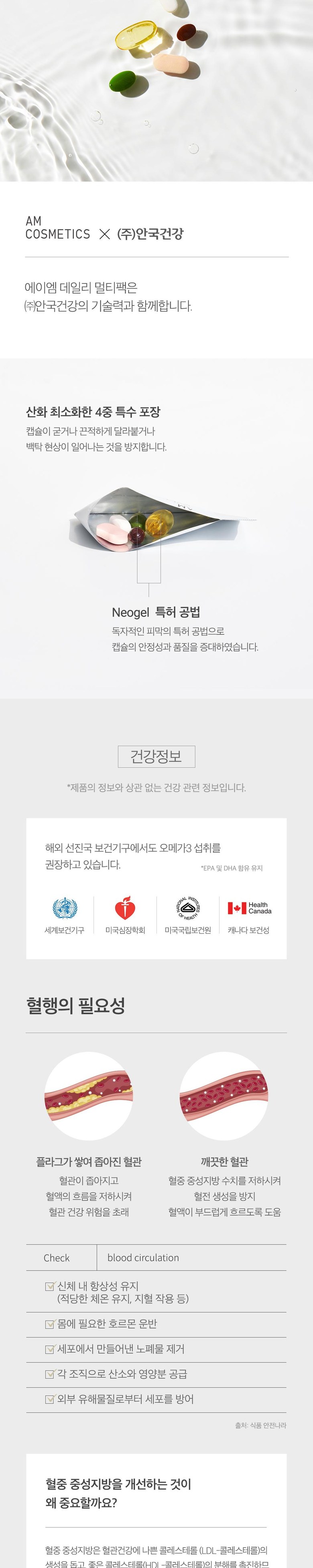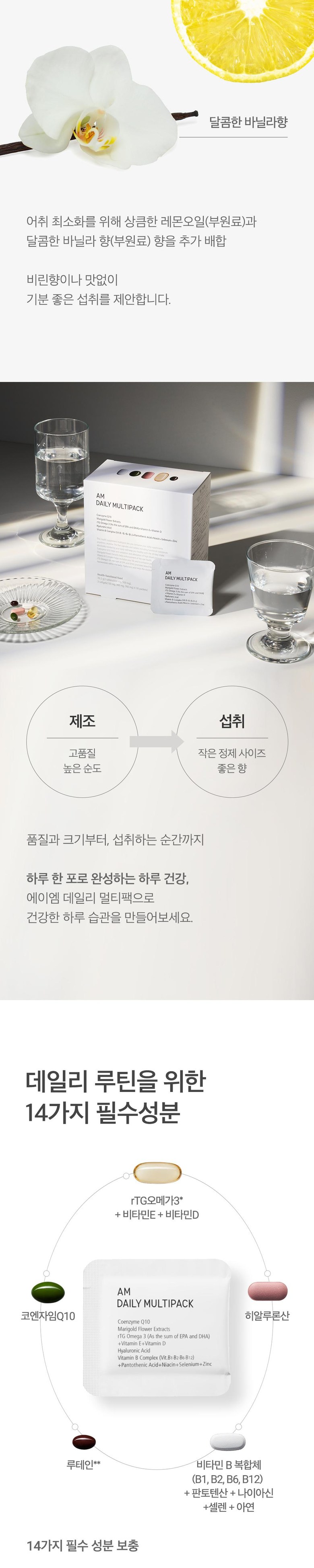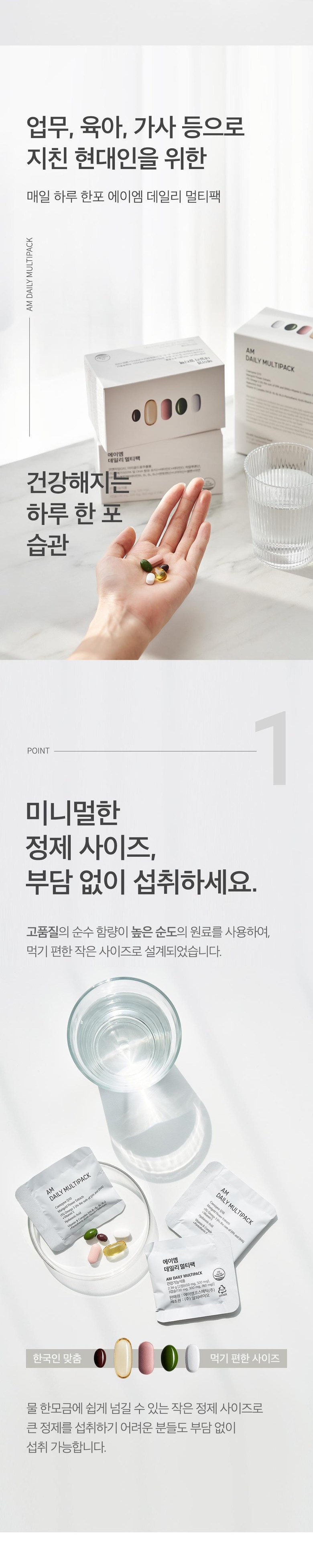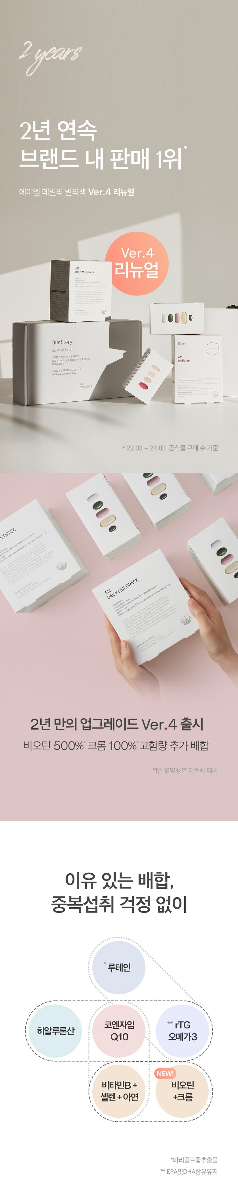 정품 에이엠 데일리 멀티팩 하루 한팩 종합 영양제, rTG오메가3, 코엔자임Q10, 히알루론산, 루테인, 비타민B 함유