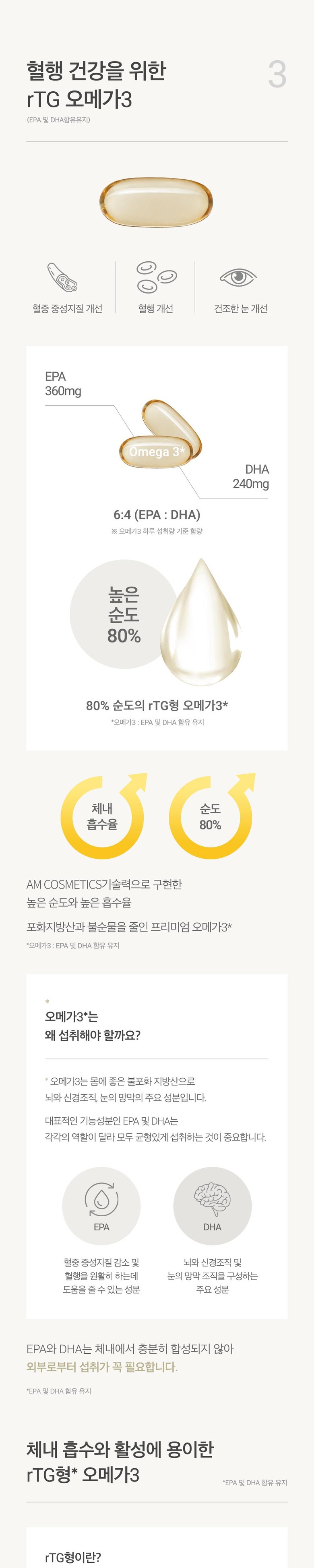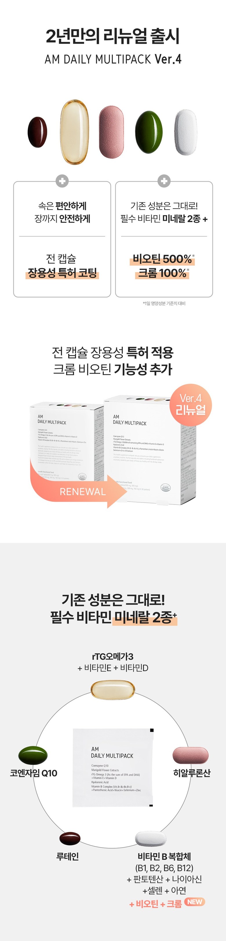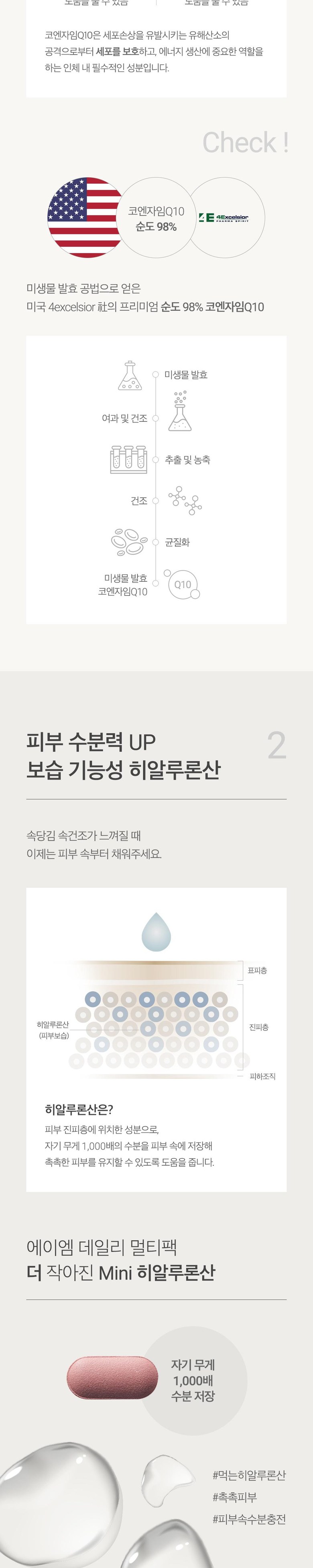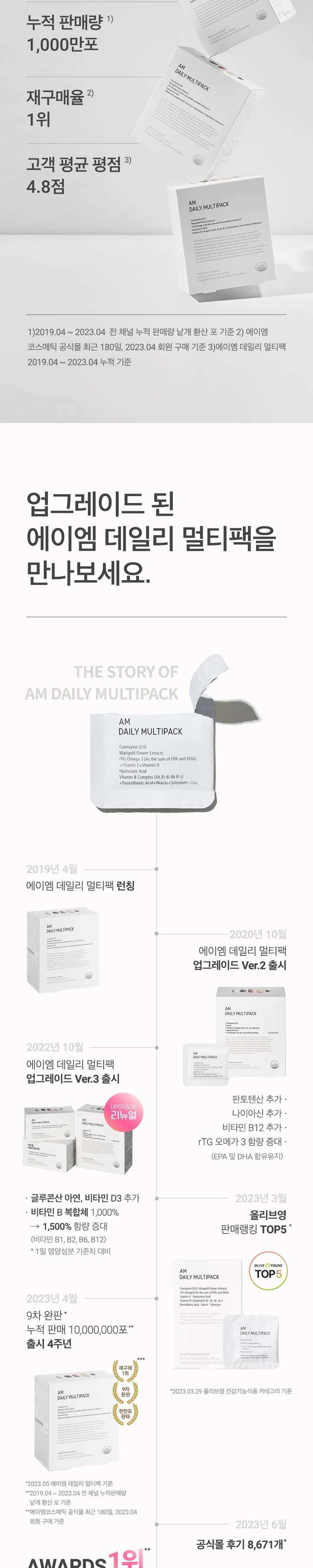 정품 에이엠 데일리 멀티팩 하루 한팩 종합 영양제, rTG오메가3, 코엔자임Q10, 히알루론산, 루테인, 비타민B 함유
