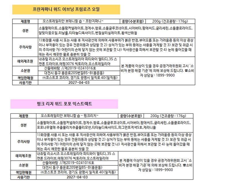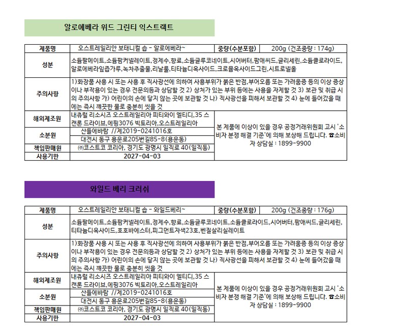 | 계절상품/식품/화장품 | ㆍ신선/냉장/냉동 상품의 단순변심의 경우 ㆍ뷰티 상품 이용 시 트러블(알러지, 붉은 반점, 가려움, 따가움)이 발생하는 경우, |