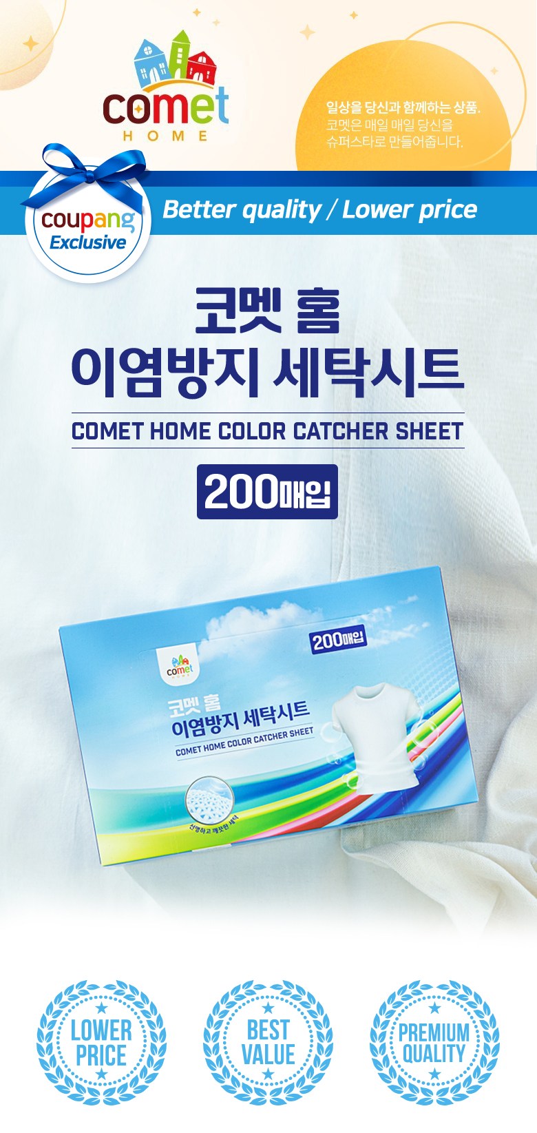 | 품명 및 모델명 | 코멧 홈 이염방지 세탁시트 200매 | 인증/허가 사항 | 해당사항없음 |