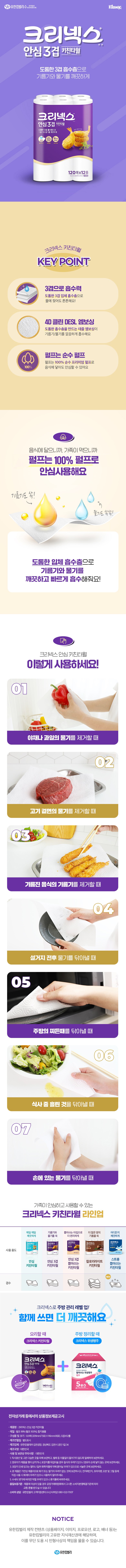 | 품명 및 모델명 | 크리넥스 안심 3겹 키친타월 | 인증/허가 사항 | 위생용품 |