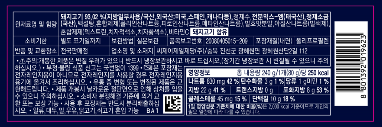 | 생산자 및 소재지 | 컨텐츠 참조 | 제조연월일, 소비기한 또는 품질유지기한 | 소비기한(또는 유통기한) : 2026년 08월 08일 이거나 그 이후인 상품<br />제조년월일 : 1945년 08월 15일 이후인 제조상품 |