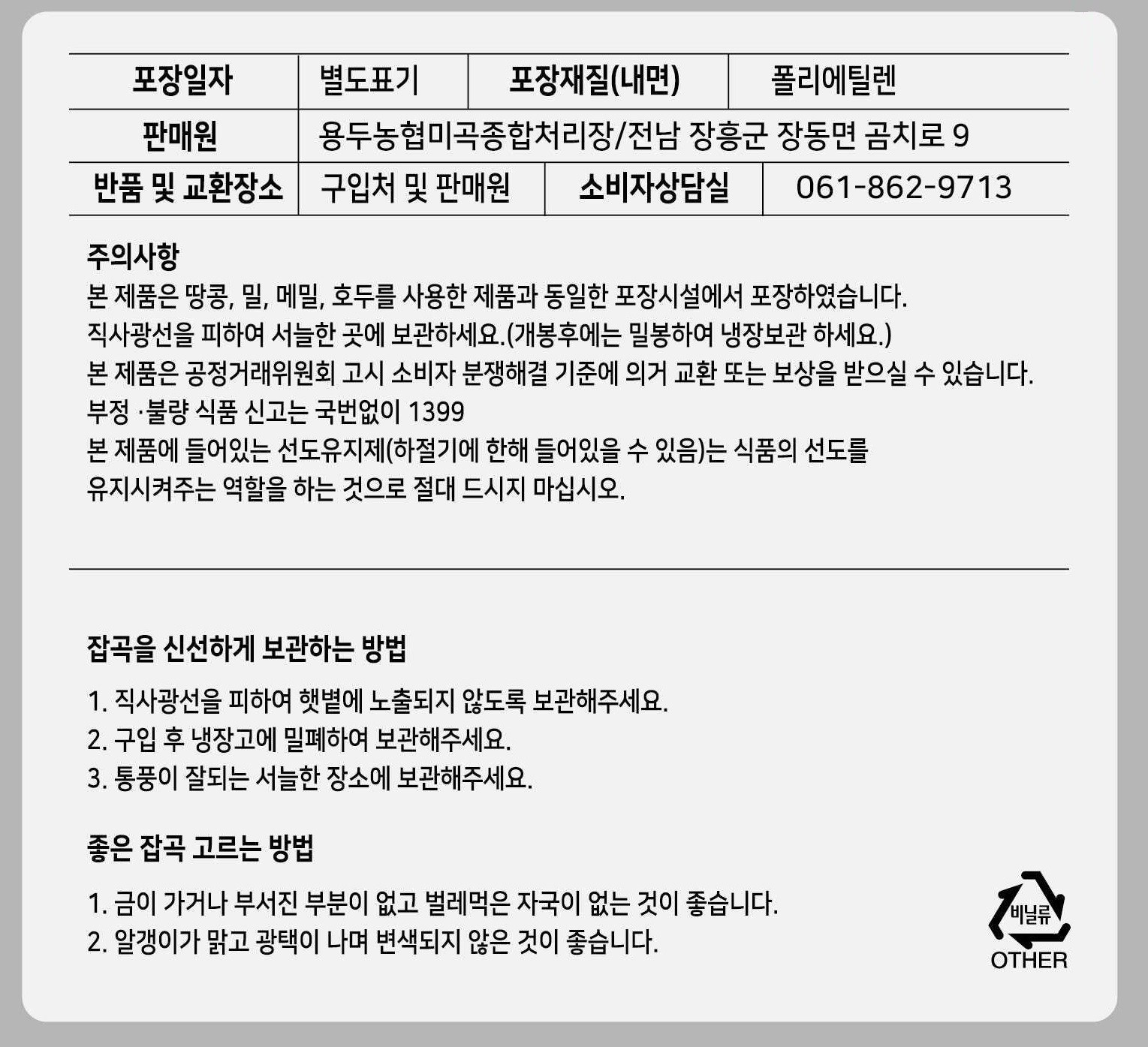| 제조연월일, 소비기한 또는 품질유지기한 | 제조년월일 : 2025년 12월 15일 이후인 제조상품 생산일자 : 2025 | 세부 품목군별 표시사항 | 유전자변형: 해당 없음 / 지리적 표시사항: 해당 없음 |