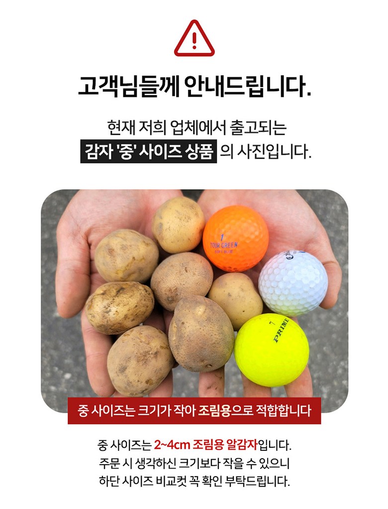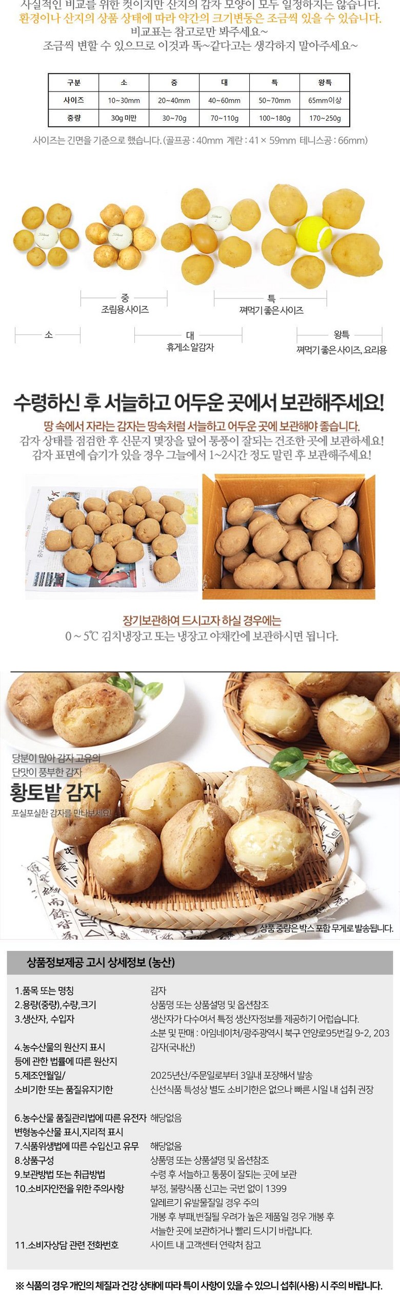 현재 저희 감자 상품은 2개이상 구매시 합포장이 가능한 구간에 맞춰 발송드리고 있습니다.