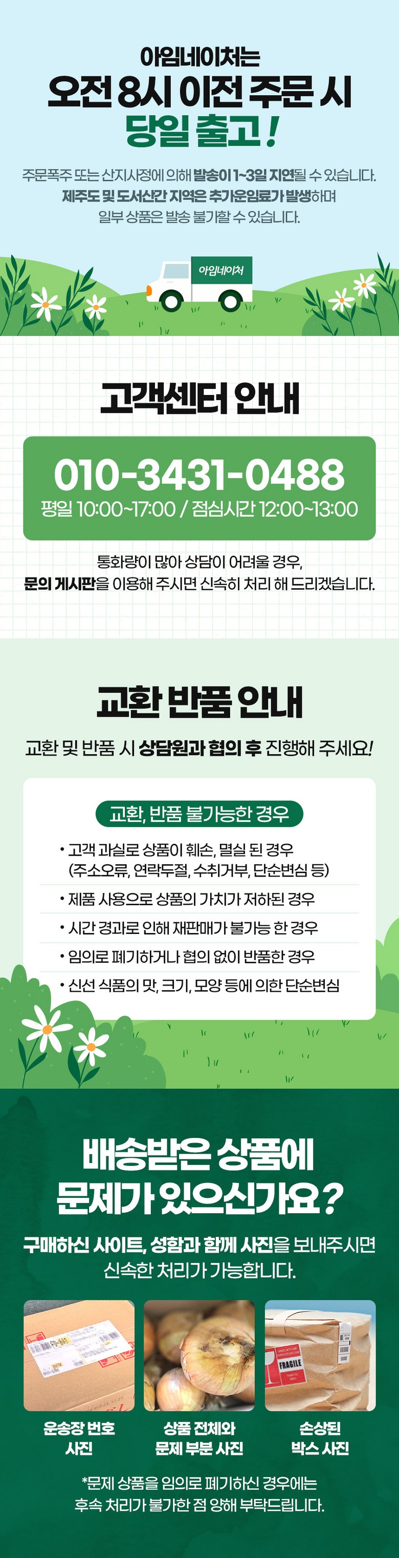 - ㆍ모니터 해상도의 차이로 인해 색상이나 이미지가 실제와 달라, 고객이 단순 변심으로 교환/반품을 무료로 요청하는 경우