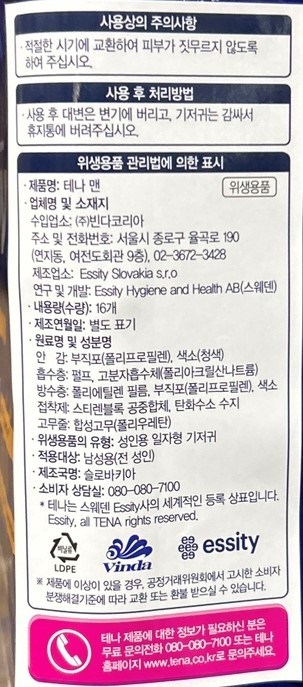 | 품명 및 모델명 | 테나 맨 | 인증/허가 사항 | 위생용품 |