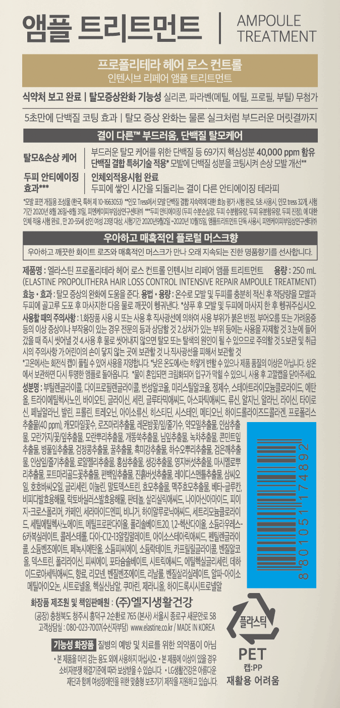 | 용량(중량) | 250ml | 제품 주요 사양 | 모든 모발용 |