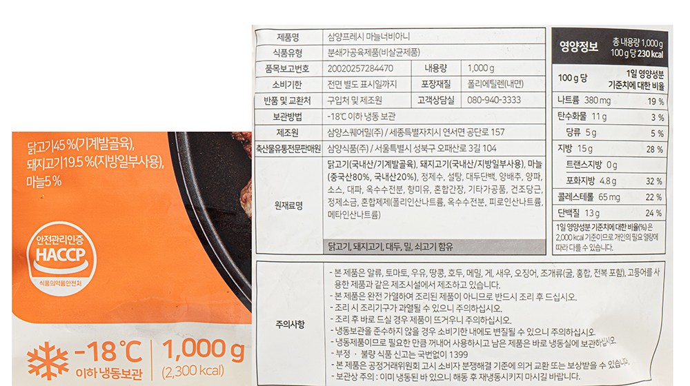 | 포장단위별 내용물의 용량(중량), 수량 | 1kg x 3개 | 원재료명 및 함량 | 컨텐츠 참조 |