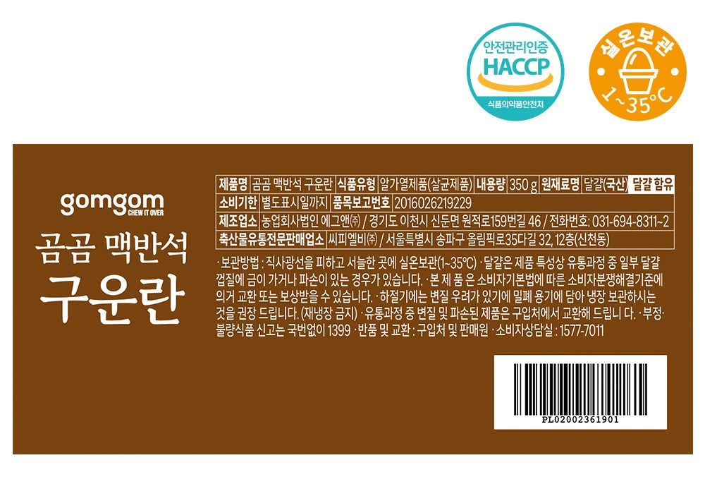 | 제품명 | 곰곰 맥반석 구운란 | 식품의 유형 | 컨텐츠 참조 |